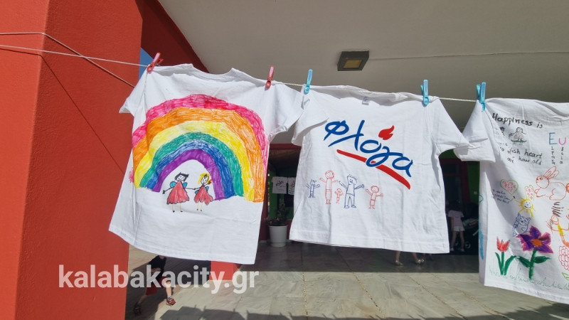 Στη όμορφη δράση τα παιδιά ζωγράφησαν επάνω σε λευκά μπλουζάκια διάφορα σχέδια και μηνύματα για τα μέλη και το έργο του Συλλόγου “ΦΛΟΓΑ”