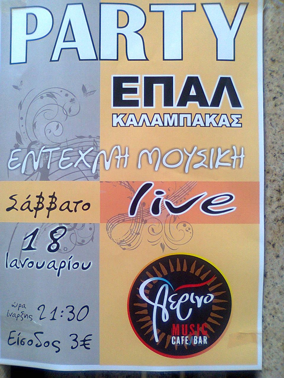 Ένα ξεχωριστό πάρτυ πραγματοποιεί το ΕΠΑΛ Καλαμπάκας το Σάββατο 18 Ιανουαρίου το βράδυ στο μουσικό καφέ ΑΕΡΙΝΟ της πόλης μας.