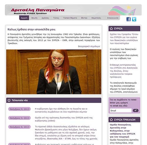 Στο διαδίκτυο με επίσημη ιστοσελίδα η βουλευτής Τρικάλων του ΣΥΡΙΖΑ Παναγιώτα Δριτσέλη