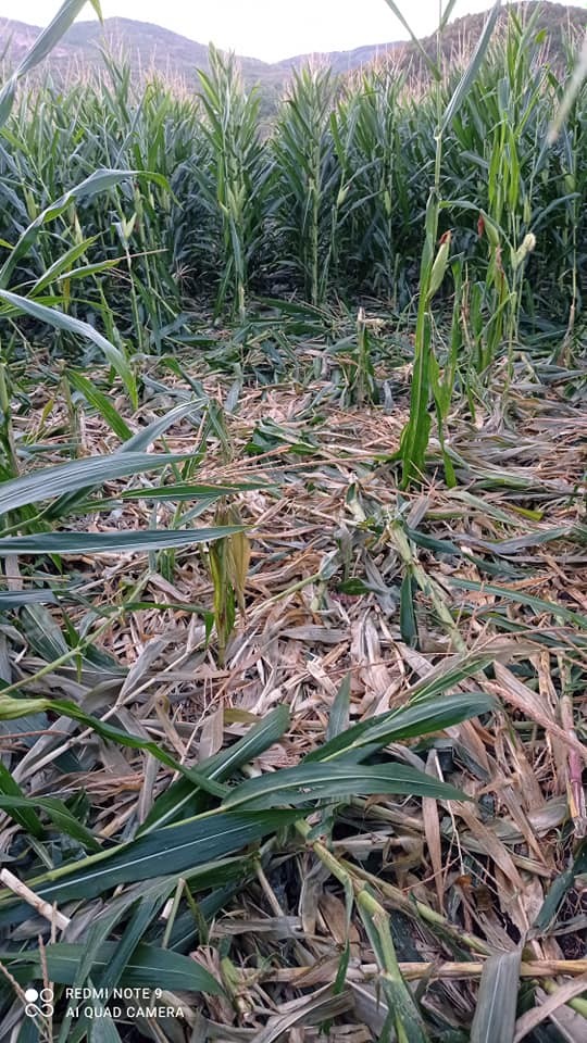 Μεγάλες είναι οι ζημιές σε διάφορες καλλιέργειες και στην συγκεκριμένη περίπτωση καλλιέργειες καλαμποκιού στο Αγιόφυλλο Καλαμπάκας.