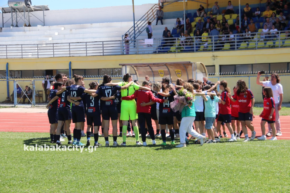 Την πρωταθλήτρια ομάδα της ΑΕΚ φιλοξενεί σήμερα στο στάδιο Καλαμπάκας ο Α.Ο Τρίκαλα 2011 σ’ ένα παιχνίδι γιορτή χωρίς βαθμολογικό ενδιαφέρον του πρωταθλήματος της Α’ Εθνικής Γυναικών.