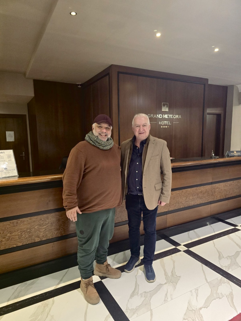 Ο κ. Αρναούτογλου έτυχε θερμής φιλοξενίας από την διεύθυνση και το προσωπικό του μεγάλου ξενοδοχείου της περιοχής μας, λαμβάνοντας και τα σχετικά αναμνηστικά από τον κ. Γιάννη Παπαπούλιο, έναν εκ των ιδιοκτητών του Grand Meteora Hotel.