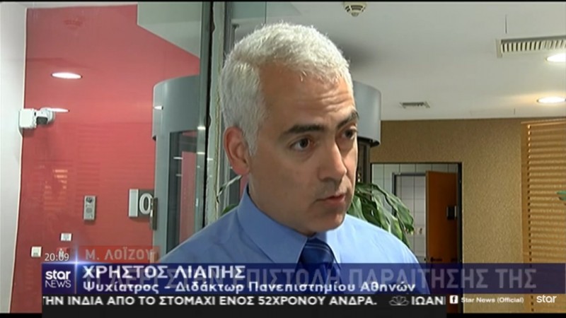 Στο Κεντρικό Δελτίο Ειδήσεων του STAR, εμφανίστηκε ο Ψυχίατρος και Διδάκτωρ του Πανεπιστημίου Αθηνών Χρίστος Λίαπης, σχολιάζοντας την υπόθεση της προσφάτως παραιτηθείσης υποψηφίας Ευρωβουλευτή του ΣΥΡΙΖΑ, κας Μυρσίνης Λοίζου και απαντώντας σε ερωτήσεις για το κατά πόσον μια Καταθλιπτική Διαταραχή θα μπορούσε να δικαιολογήσει συμπεριφορές όπως αυτή της επί 5 χρόνια παράνομης εισπράξεως της συντάξεως της θανούσης μητρός της.