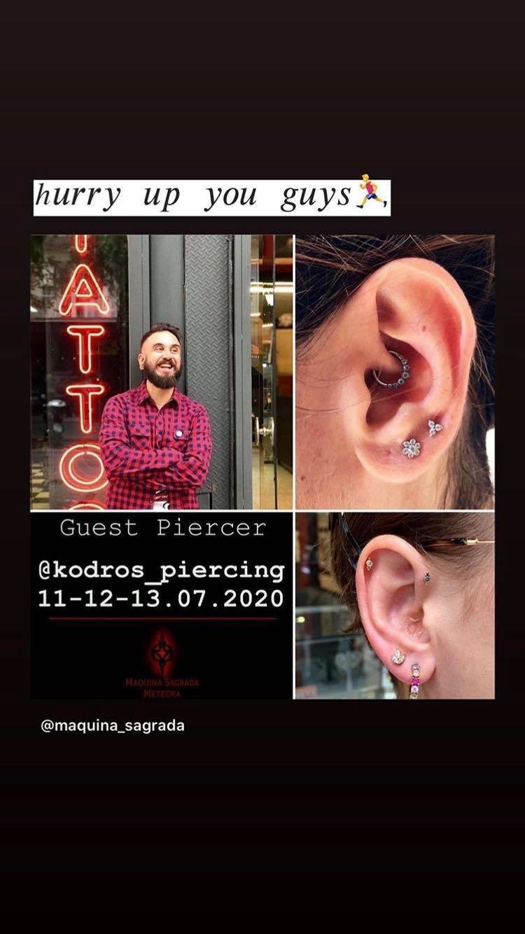 Ένας από τους καλύτερους επαγγελματίες piercer στην Ελλάδα από το Nico Tattoo της Θεσσαλονίκης, θα βρίσκεται στο maquina sagrada tattoo & piercing studio, Γ. Κονδύλη 21, Καλαμπάκα στις 11-12-13 Ιουλίου.