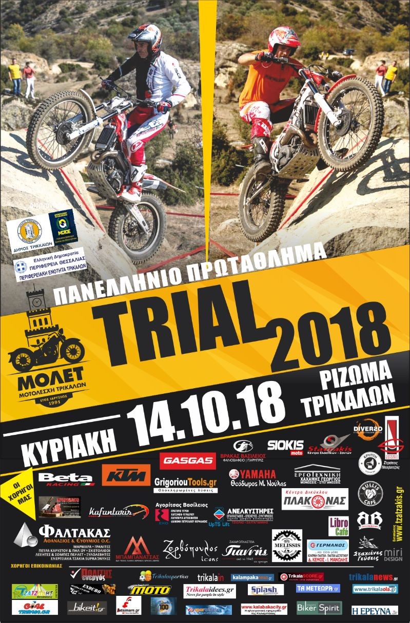ΠΑΝΕΛΛΉΝΙΟ ΠΡΩΤΆΘΛΗΜΑ TRIAL ΤΡΙΤΟΣ ΑΓΩΝΑΣ ΣΤΟ ΡΊΖΩΜΑ ΤΡΙΚΆΛΩΝ ΚΥΡΙΑΚΉ 14/10/2018 ΚΑΙ ΏΡΑ 10.00.