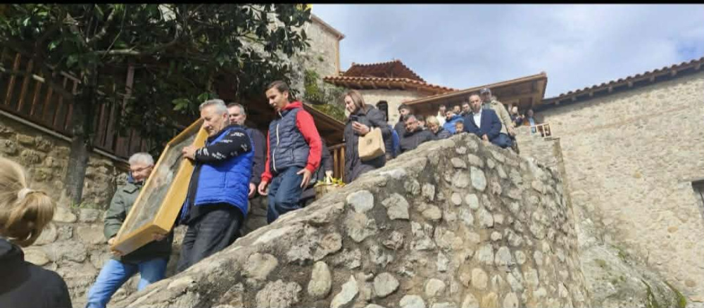 Συγκεκριμένα αρκετοί κάτοικοι ξεκίνησαν σήμερα το πρωί από το χωριό με προορισμό την Ιερά μονή Μεγάλου Μετεώρου ( Μεταμορφώσεως του Σωτήρος ) όπου με θρησκευτικότητα και ευλάβεια παρέλαβαν της εικόνα την Παναγίας “Γλυκοφιλούσης”.