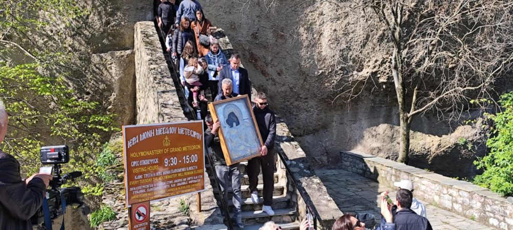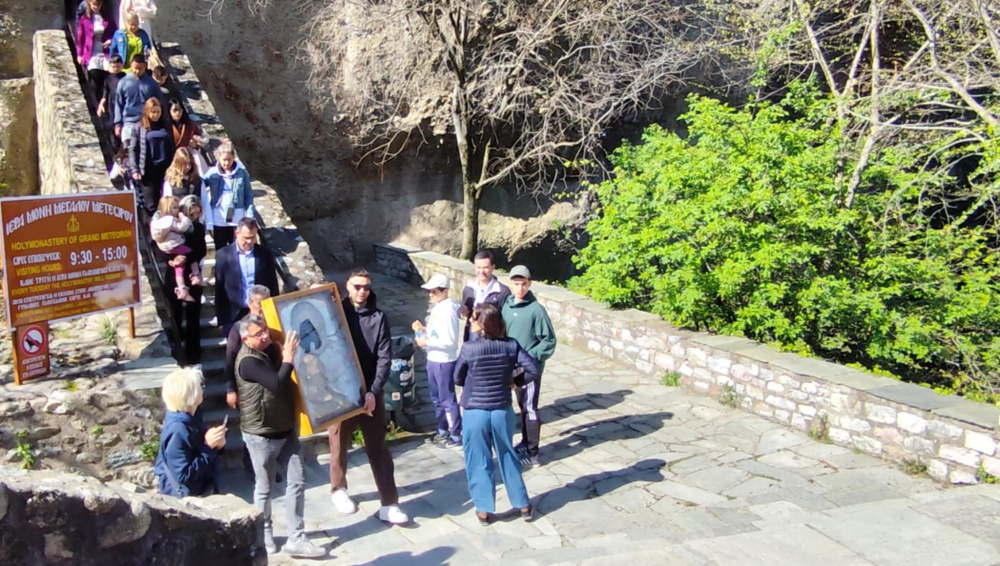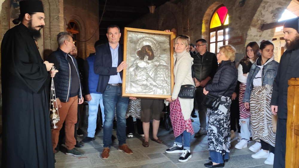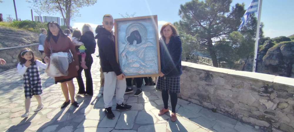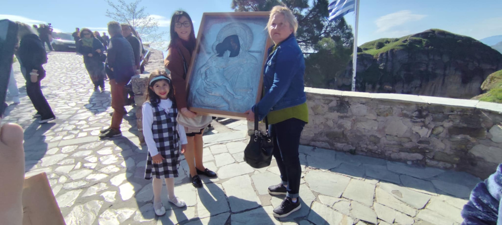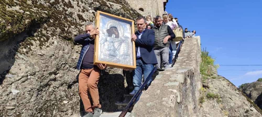 Συγκεκριμένα αρκετοί κάτοικοι ξεκίνησαν σήμερα το πρωί από το χωριό με προορισμό την Ιερά μονή Μεγάλου Μετεώρου ( Μεταμορφώσεως του Σωτήρος ) όπου με θρησκευτικότητα και ευλάβεια παρέλαβαν της εικόνα την Παναγίας “Γλυκοφιλούσης”.
