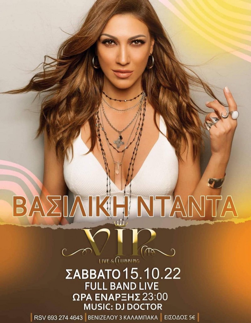 Η Βασιλική Νταντά με την μπάντα της θα σας διασκεδάσουν το βράδυ του Σαββάτου στον φιλόξενο χώρο του VIP Live & Clubbing. Στα decks θα είναι ο Dj Doctor – Σάκης Αργύρης