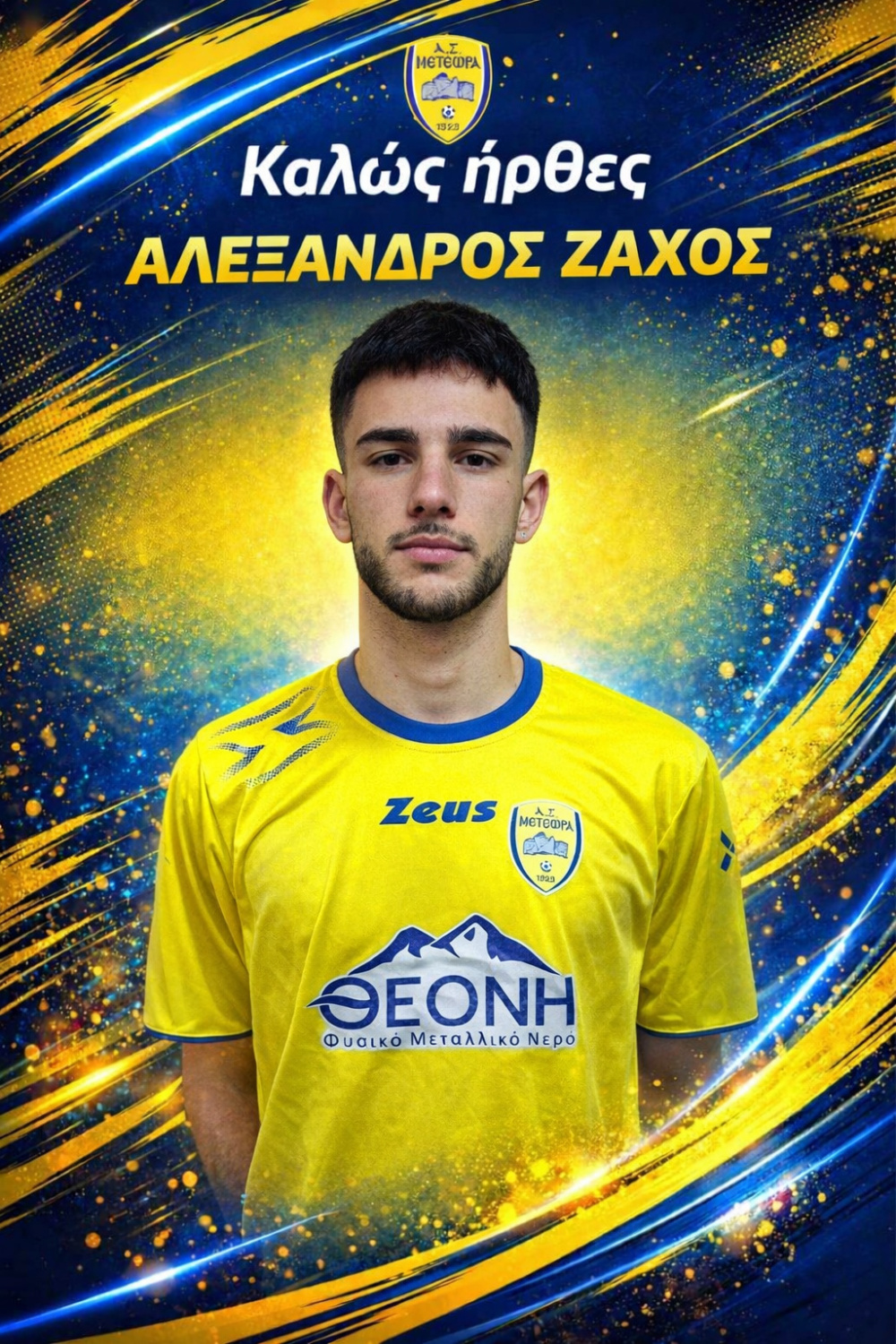 Ο ΑΣ Μετέωρα ανακοινώνει με μεγάλη χαρά την μεταγραφή του 18χρονου πλάγιου επιθετικού Αλέξανδρου Ζάχου ο οποίος αγωνίζονταν μέχρι πρότινος στην Θύελλα Μοσχάτου.