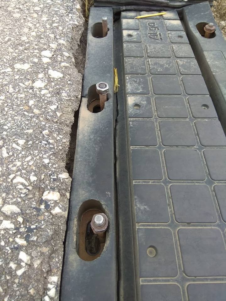 Τα μεταλλικά ελάσματα που βρίσκονται εντός των τμημάτων της γέφυρας ( οδόστρωμα ) στηρίζονται με βίδες, εκ των οποίων πολλά παξιμάδια να έχουν ξεβιδωθεί και να εξέχουν του οδοστρώματος με κίνδυνο πρόκλησης φθοράς στα ελαστικά των αυτοκινήτων και με το χειρότερο σενάριο πρόκλησης κάποιου ατυχήματος!