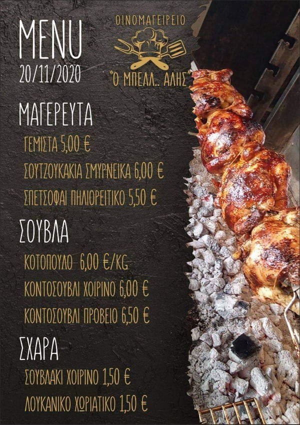 Νέο πλούσιο μενού έχει το γνωστό Οινομαγειρείο  “Ο ΜΠΕΛΛ.. ΑΛΗΣ” της πόλης μας από σήμερα Παρασκευή.