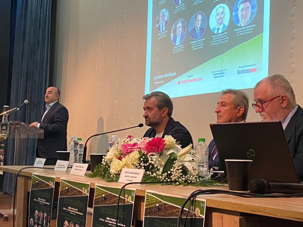 «Η Πειραιώς είναι σταθερά δίπλα στον αγροτικό κόσμο στηρίζοντάς τον σε όλες τις δράσεις του, με στόχο την αύξηση της βιωσιμότητας, της ανθεκτικότητας και της αποτελεσματικότητάς του, για έναν ανταγωνιστικό αγροτικό τομέα» είπε μεταξύ άλλων ο κ. Γιάννης Χανιωτάκης, Senior Director Ανάπτυξης Εργασιών Αγροτικού Τομέα της Πειραιώς. Μίλησε, επίσης, για τη χρηματοδότηση επενδύσεων ΑΠΕ αγροτών και αγροτικών επιχειρήσεων με έμφαση στο επιχορηγούμενο πρόγραμμα «Φωτοβολταϊκά στο Χωράφι», καθώς για το επικείμενο πρόγραμμα εκσυγχρονισμού, επέκτασης και εγκατάστασης θερμοκηπίων. Παράλληλα, έκανε ειδική μνεία για το συνδυασμό χρηματοδοτικής και συμβουλευτικής στήριξης που προσφέρει η Πειραιώς για την υλοποίηση επενδύσεων στον αγροτικό τομέα.