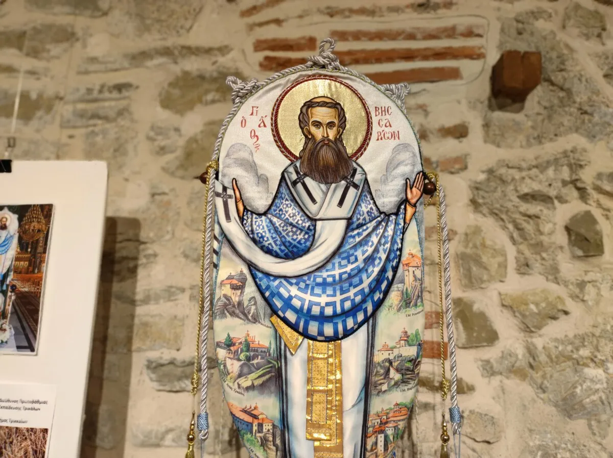 Παρόντες στα εγκαίνια της έκθεσης ηταν ο Δήμαρχος Τρικκαίων Δημήτρης Παπαστεργίου, ο Περιφερειακός Σύμβουλος Ντίνος Μπάρδας, η Αντιδήμαρχος Πολιτισμού Έφη Λεβέντη, ο Διευθυντής Πρωτοβάθμιας Εκπαίδευσης Χρήστος Τρικάλης και ο Δημοτικός Σύμβουλος Πύλης Βαγγέλης Κουτής, οι οποίοι θαύμασαν το κεντημένο Λάβαρο του Αγίου Βησσαρίωνα.