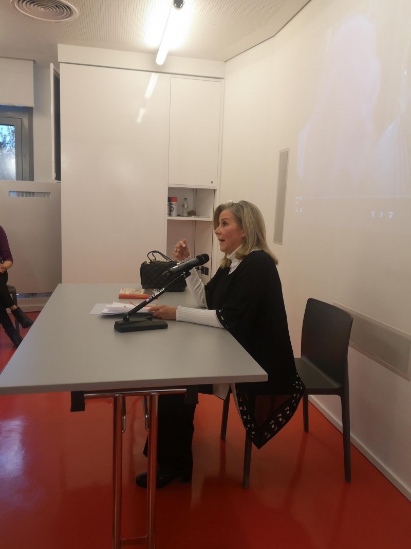 Στη συνέχεια, αναφέρθηκε στη μεταφορά του βιβλίου στη μικρή οθόνη, στη θερμή αποδοχή του κοινού, στους συντελεστές της σειράς και την ικανοποίησή της από το αποτέλεσμα. Μετά το τέλος της ομιλίας, η συγγραφέας ανέγνωσε ένα απόσπασμα του βιβλίου, συνομίλησε με το κοινό και υπέγραψε αντίτυπα του βιβλίου της.