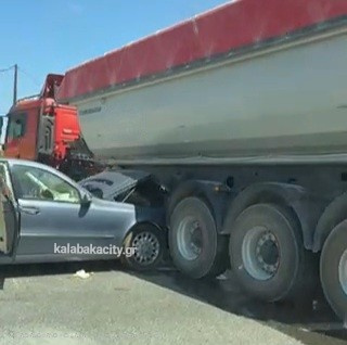 Συγκεκριμένα Ι.Χ αυτοκίνητο συγκρούστηκε με νταλίκα κάτω από άγνωστες συνθήκες στην διασταύρωση της ε.ο.