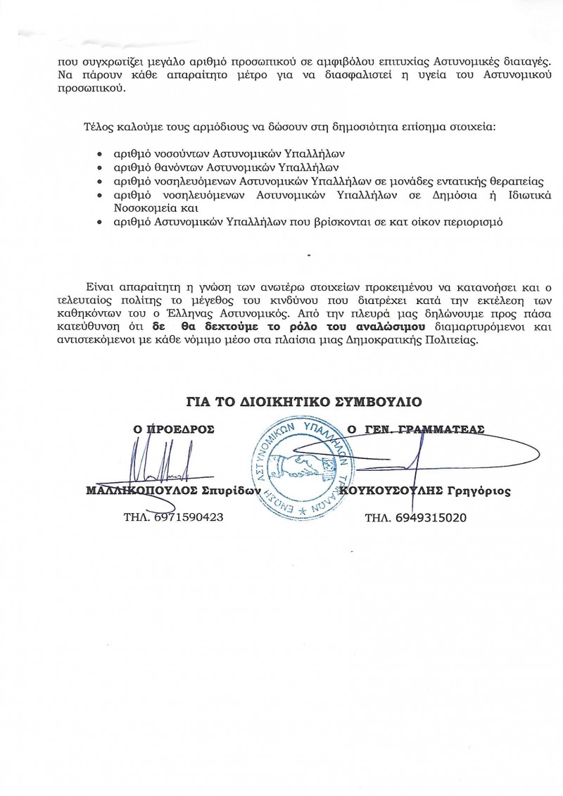 Από την πλευρά μας δηλώνουμε προς πάσα κατεύθυνση ότι δε θα δεχτούμε το ρόλο του αναλώσιμου διαμαρτυρόμενοι και αντιστεκόμενοι με κάθε νόμιμο μέσο στα πλαίσια μιας Δημοκρατικής Πολιτείας.