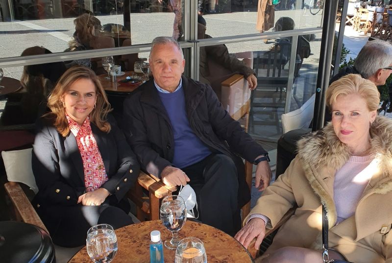 Με την Υφυπουργό ο Ηλίας Βλαχογιάννης συνδέεται με μακροχρόνια φιλία και είχαν την ευκαιρία να τα πουν χαλαρά, απολαμβάνοντας το καφεδάκι τους στον πεζόδρομο της Ασκληπιού ,παρουσία και του Διευθυντού