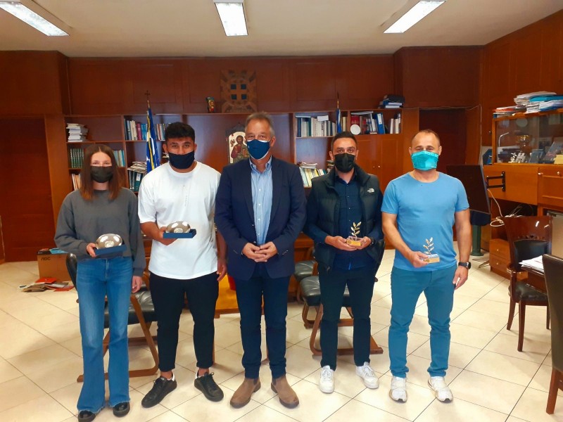 Συνάντηση με τον Χρήστο Μιχαλάκη είχαν οι πρωταθλητές της πάλης Ευαγγελία Ψωμά και Απόστολος Τσιόβολος