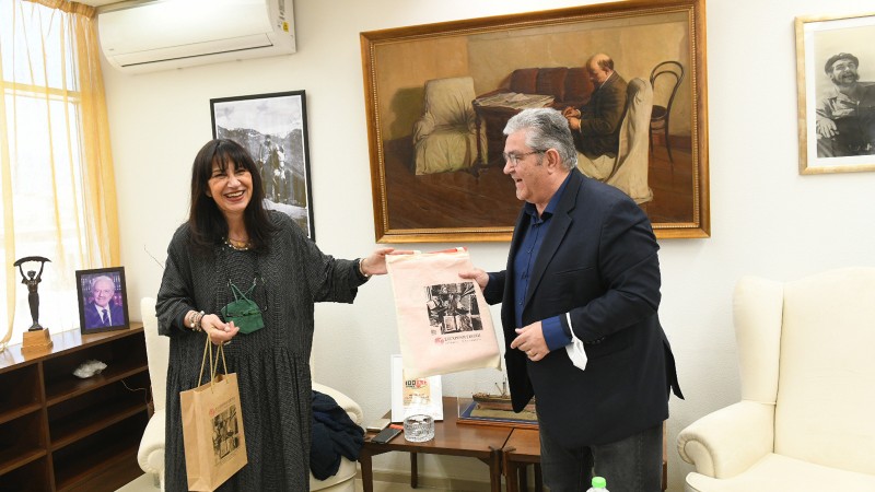 Ο Δ. Κουτσούμπας παρέδωσε στη γυναίκα του Βένια και την κόρη του Αναστασία υλικά από το Αρχείο του Κόμματος, τα οποία αναφέρονται στον πατέρα του αξέχαστου ερμηνευτή, Γιώργο.