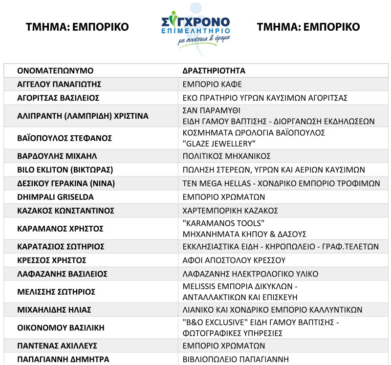 Οι 99 υποψήφιοι του συνδυασμού ΣΥΓΧΡΟΝΟ ΕΠΙΜΕΛΗΤΗΡΙΟ είναι: