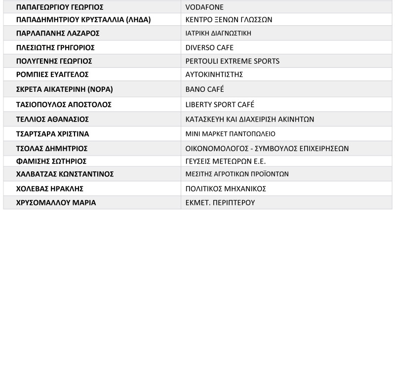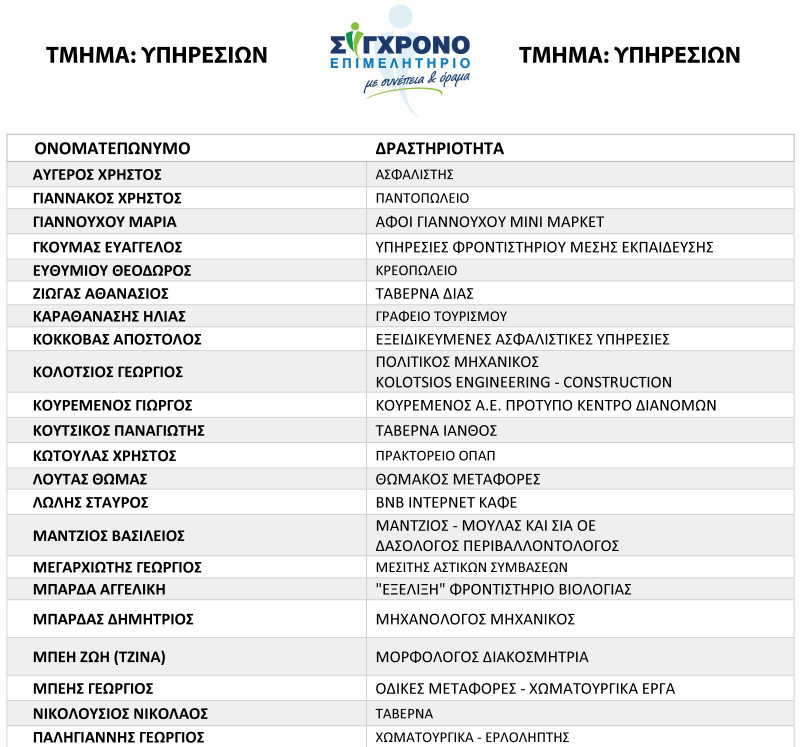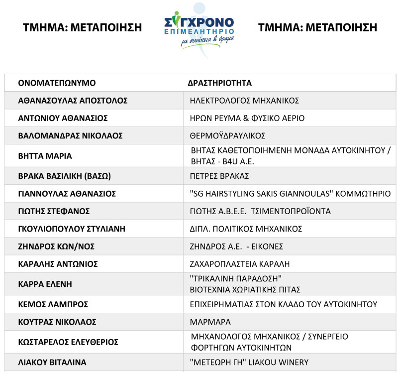 Οι 99 υποψήφιοι του συνδυασμού ΣΥΓΧΡΟΝΟ ΕΠΙΜΕΛΗΤΗΡΙΟ είναι: