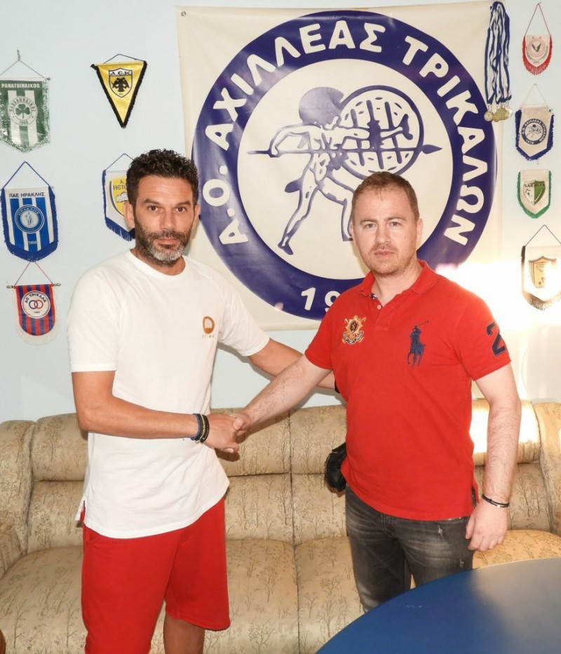 Στην φωτό ο Θέμελης δίνει τα χέρια τον Σωτήρη Καλτσή, επισφραγίζοντας έτσι την 5η σερί χρονιά του στον ιστορικό Αχιλλέα.