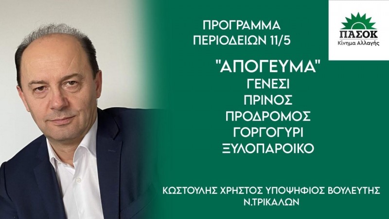 Το πρόγραμμα περιοδειών για την Πέμπτη 11/5