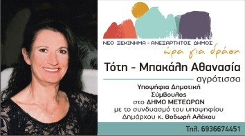 Ακούραστη συνεχίζει για το καλύτερο αποτέλεσμα τόσο για τον συνδυασμό της όσο και για την ίδια η Υποψήφια Δημοτική Σύμβουλος από την Θεόπετρα Αθανασία Μπακάλη – Τότη στην Δ.Ε Βασιλικής με τον Θοδωρή Αλέκο.