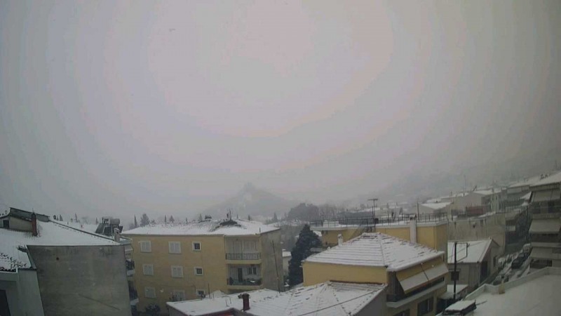 Στα λευκά και παλι η Καλαμπάκα απο το νεο κυμα κακοκαιρίας που ξεκινησε να πλήττει το νομο Τρικάλων απο νωρις το πρωι.