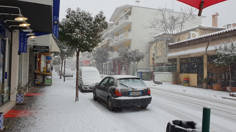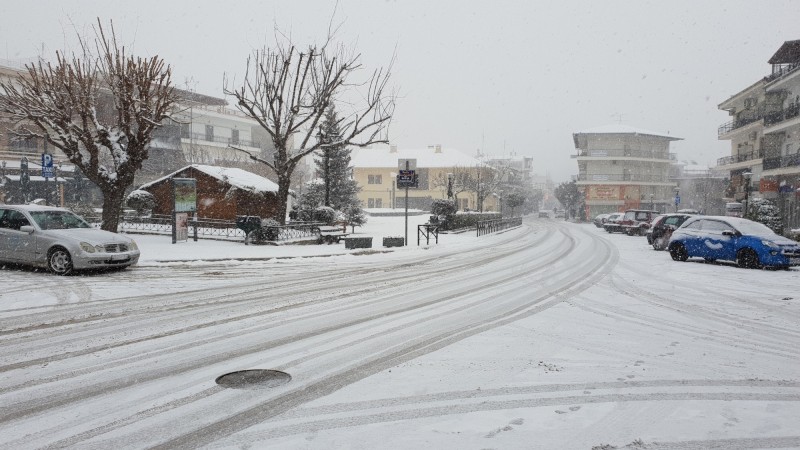 Η χιονόπτωση που ξεκίνησε στην Καλαμπάκα αλλα με ενταση απο τις μεσημεριανές ωρες έχει ως αποτέλεσμα το χιόνι να στρωθεί και παλι στο παγωμένο οδόστρωμα και τα σχολεία να μην λειτουργήσουν και αυριο.