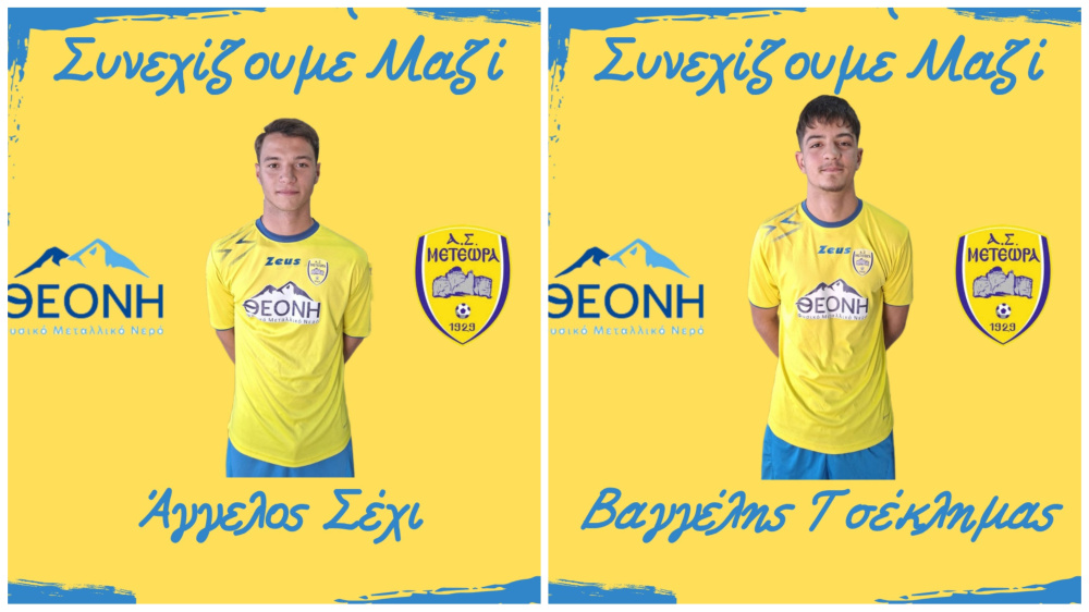Ο ΑΣ Μετέωρα με ιδιαίτερη χαρά ανακοινώνει την παραμονή στην ομάδα των νεαρών ποδοσφαιριστών Άγγελου Σέχι και Βαγγέλη Τσέκλημα.