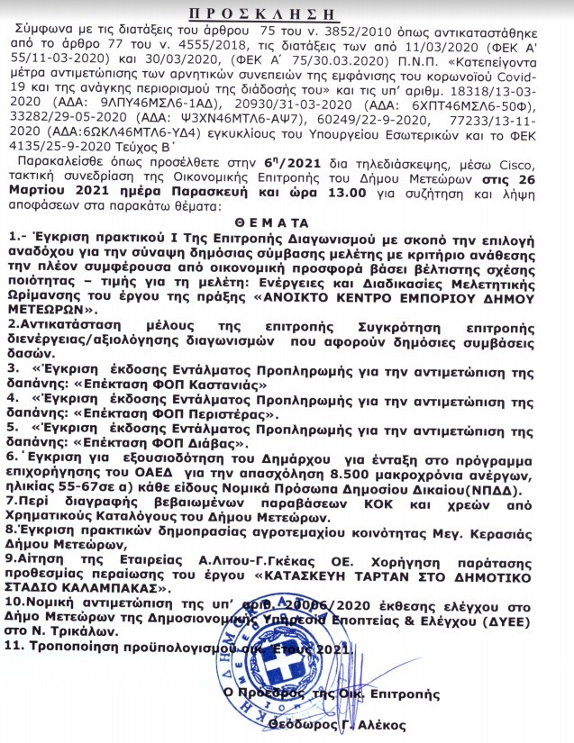 Καλαμπάκα: Ο πίνακας συμμετεχόντων πωλητών στην λαϊκή αγορά της Παρασκευής 26/3