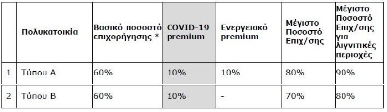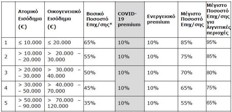 Για αιτήσεις μεμονωμένων διαμερισμάτων και μονοκατοικιών, το μέγιστο ποσοστό επιχορήγησης ορίζεται ως εξής: