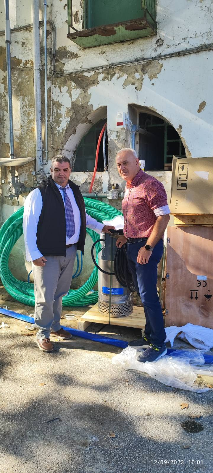 Παρέδωσε 3 αντλίες καθαρών υδάτων των 2,2kw εκάστη και 1 ακάθαρτων 18kw συνολικής αντλητικής δυνατότητας έως 400m3 την ώρα.