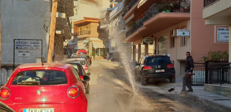 Το σπασιμο ενος αγωγου ύδρευσης προκάλεσε… συντριβάνι στην οδο Χατζηπετρου της πολης μας σήμερα το πρωι…
