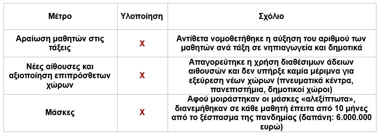 Ωστόσο, την ίδια στιγμή το υπουργείο Παιδείας βρίσκεται σε νομοθετικό «ντελίριο» και αξιοποιεί την πανδημία ως ευκαιρία για τη μεγαλύτερη αντιδραστική και αντιεκπαιδευτική μεταρρύθμιση των τελευταίων ετών. Θέσπισε νέο σύστημα εισαγωγής στην τριτοβάθμια εκπαίδευση και θεσμοθέτησε την Ελάχιστη Βάση Εισαγωγής, επανάφερε την Τράπεζα Θεμάτων, ψήφισε διευκολύνσεις στους ιδιοκτήτες των ιδιωτικών σχολείων, αναμόρφωσε προς το χειρότερο την Επαγγελματική Εκπαίδευση & Κατάρτιση και νομιμοποίησε την ανήλικη απλήρωτη εργασία.
