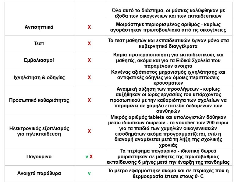 Ένα χρόνο μετά την έναρξη της πανδημίας, τα σχολεία ανοίγουν όπως έκλεισαν και κλείνουν όπως άνοιξαν δίχως ουσιαστικά μέτρα, επαναλαμβάνοντας το ίδιο αποτυχημένο πείραμα σε βάρος της δημόσιας εκπαίδευσης και των οικογενειών. Ενδεικτικά: