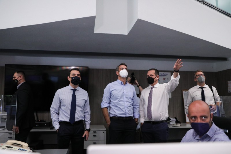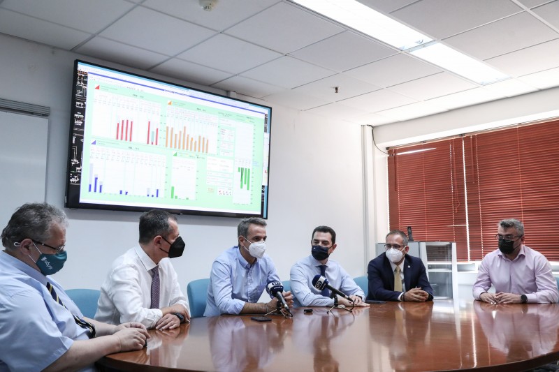 Σύσκεψη με τον υπουργό Περιβάλλοντος και Ενέργειας Κώστα Σκρέκα, διοικητικά στελέχη του ΑΔΜΗΕ, του ΔΕΔΔΗΕ και παραγωγούς ηλεκτρικής ενέργειας είχε το πρωί ο Πρωθυπουργός Κυριάκος Μητσοτάκης στο Εθνικό Κέντρο Ελέγχου Ενέργειας.