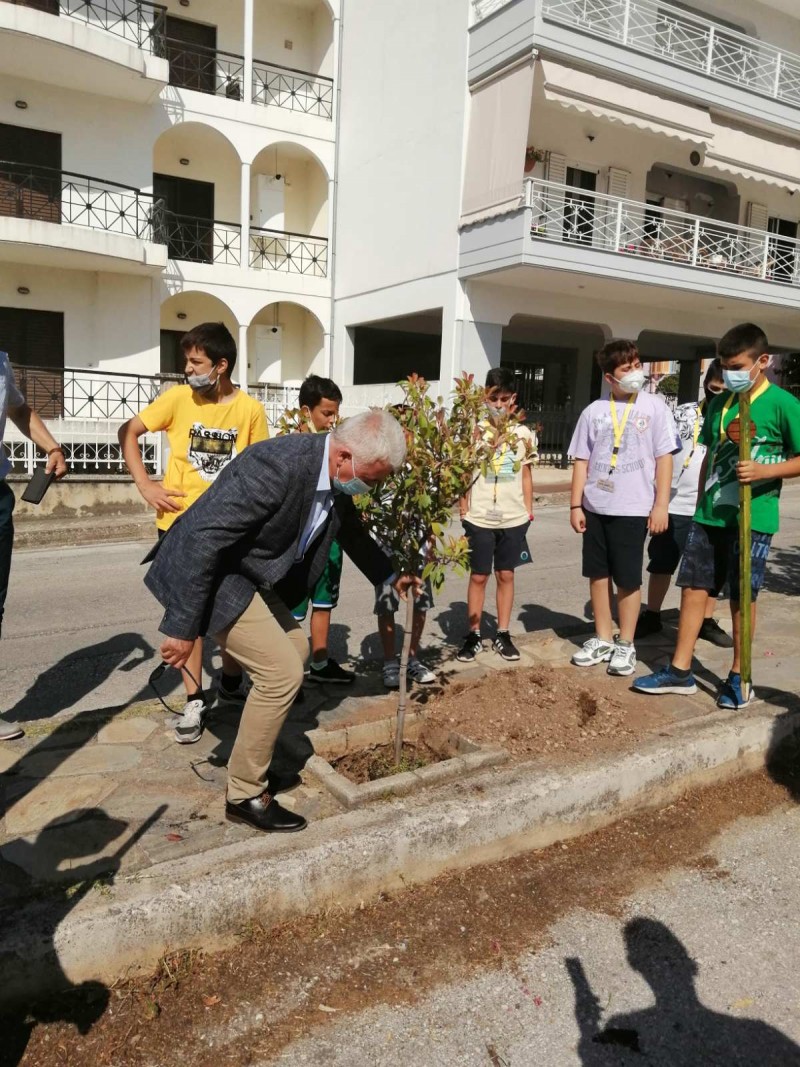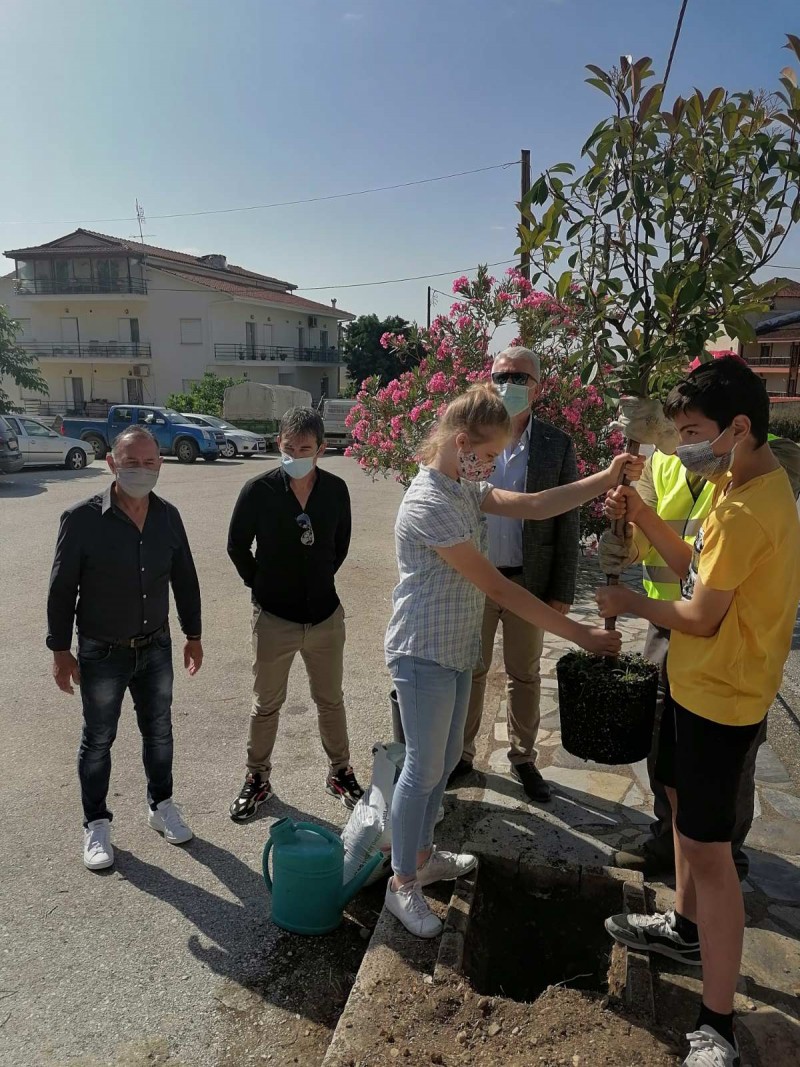 Παράλληλα ο Δήμαρχος τους υποσχέθηκε ότι μαζί τους θα πραγματοποιήσει δενδροφύτευση κάτι που ήταν και επιθυμία τους που κανονίστηκε και υλοποιήθηκε την Τρίτη 8/6/2021. Συνεργείο του τμήματος πρασίνου του Δήμου μας παρείχε όλες τις υπηρεσίες και τα απαραίτητα εφόδια στους μαθητές για να πραγματοποιήσουν την επιθυμία τους.
