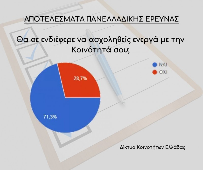 Ιδιαίτερα ενθαρρυντικό το γεγονός ότι 70% των πολιτών που απάντησαν επιθυμούν να ασχοληθούν ενεργά με την Κοινότητα τους, λαμβανομένου υπόψη ότι μόλις ο 1 στους 10 από τους ερωτηθέντες είναι αιρετοί.