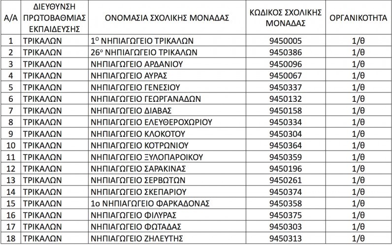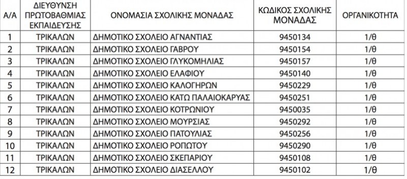 Σύμφωνα με την απόφαση του Περιφερειακού Διευθυντή Εκπαίδευσης Θεσσαλίας Γ. Δοδοντσάκη, τα σχολεία που κλείνουν είναι τα εξής: