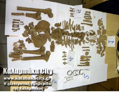 Προχθές (31-10-2013) το μεσημέρι στην ευρύτερη περιοχή της Καλαμπάκας βρέθηκαν από 36χρονο ημεδαπό, τμήματα ανθρώπινου σκελετού και πλήθος αντικειμένων που εμπίπτουν στον νόμο περί αρχαιοτήτων.