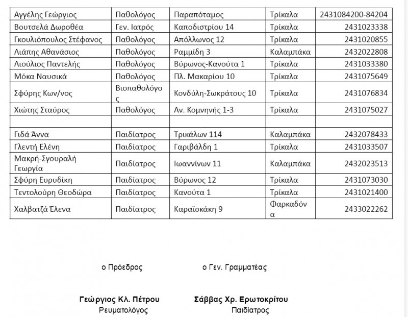 Το νέο Δ.Σ. της Ένωσης Ιατρών Νοσοκομείου – Κέντρων Υγείας Ν. Τρικάλων