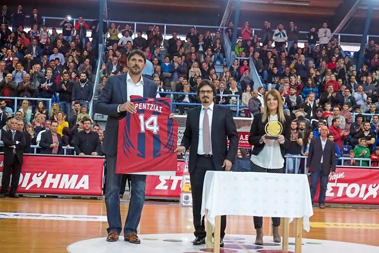 Οι παίκτες των δύο ομάδων χειροκρότησαν θερμά τον Ευθύμη Ρεντζιά ο οποίος γνώρισε την αποθέωση από τους 2.500 περίπου φιλάθλους που βρέθηκαν στο Δημοτικό κλειστό.