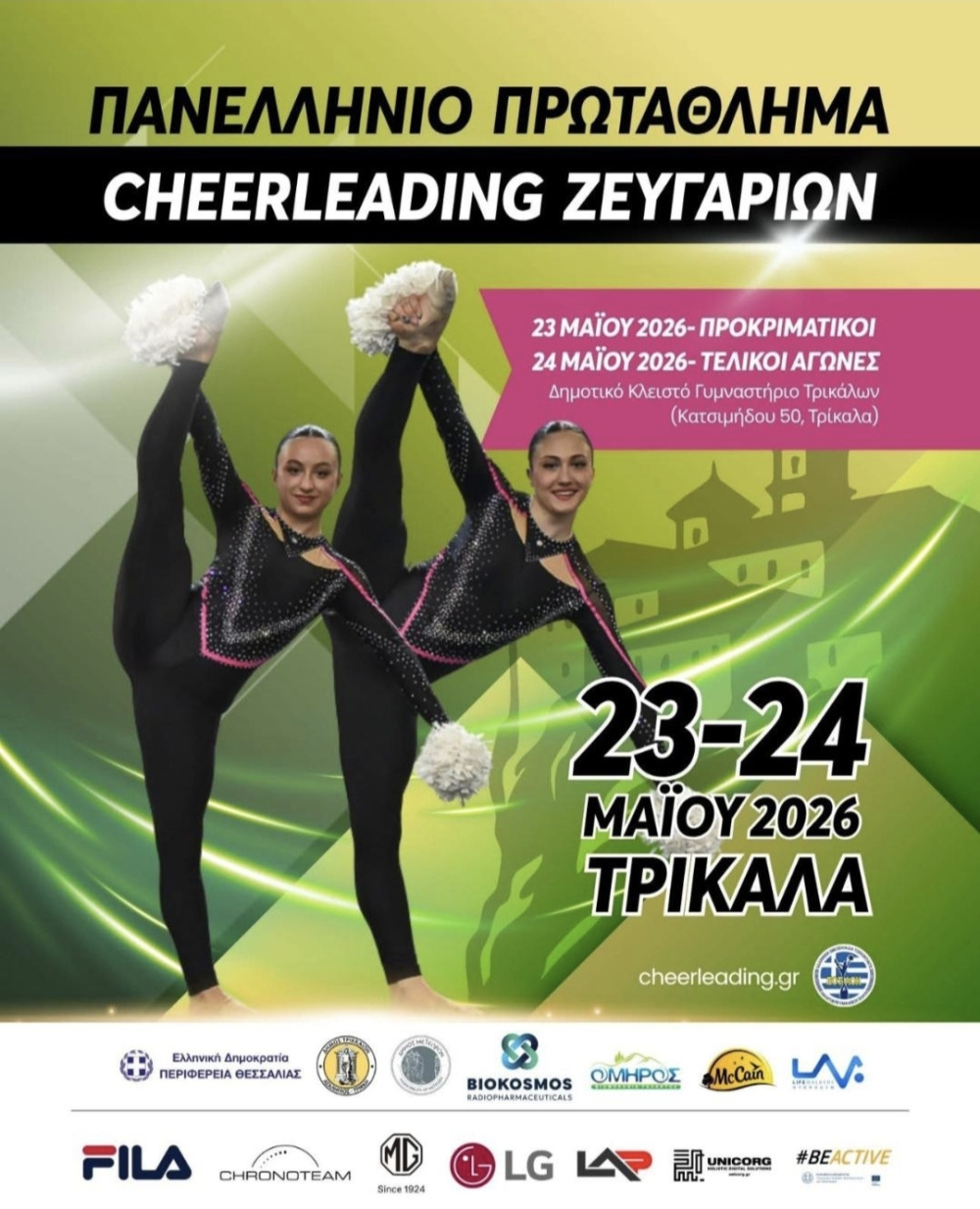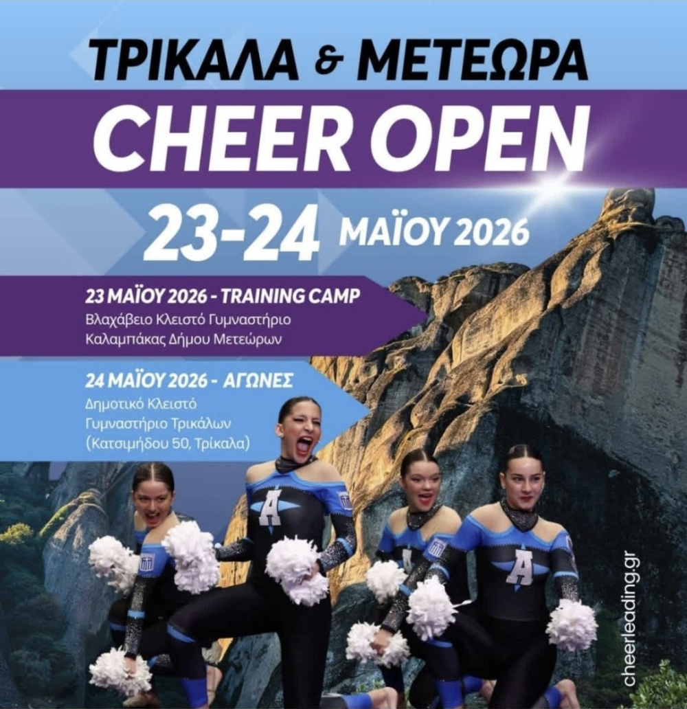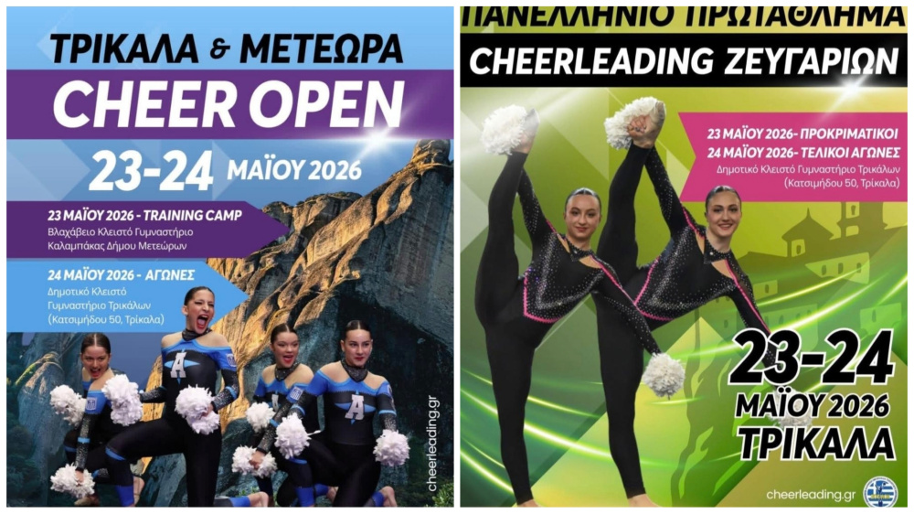 Η καρδιά του ελληνικού Cheerleading θα χτυπά δυνατά στη Θεσσαλία το διήμερο 23 και 24 Μαΐου 2026. Για πρώτη φορά, η πόλη των Τρικάλων θα φιλοξενήσει το Πανελλήνιο Πρωτάθλημα Cheerleading Ζευγαριών, ενώ παράλληλα θα διεξαχθεί το εντυπωσιακό Τρίκαλα & Μετέωρα Cheer Open 2026.