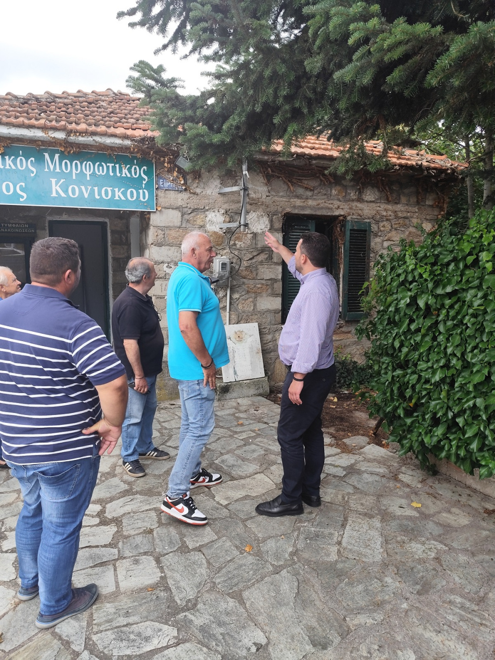 Ο Δήμαρχος επισκέφτηκε και την πλατεία του χωριού, όπου συνεργείο του Δήμου ολοκλήρωσε την αντικατάσταση του ηλεκτροφωτισμού, ενισχύοντας την ασφάλεια και την αισθητική του δημόσιου χώρου. Στη συνέχεια επισκέφτηκε τον Κονισκό, όπου συνομίλησε με κατοίκους και άκουσε από τον Πρόεδρο, κ. Χρήστο Θεοχάρη, το αίτημα για ανακαίνιση του Δημοτικού Κτιρίου στην πλατεία. Ο Δήμαρχος δεσμεύτηκε ότι το έργο θα δρομολογηθεί από τη νέα χρονιά.