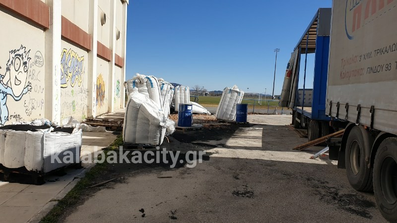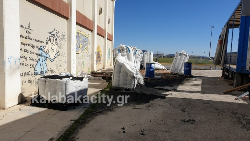 Σήμερα από το πρωί ξεκίνησε η διαδικασία μεταφοράς – αποχωρησης των υλικών για το ταρτάν Καλαμπάκας απο τον χώρο που ηταν στιβαγμενο.