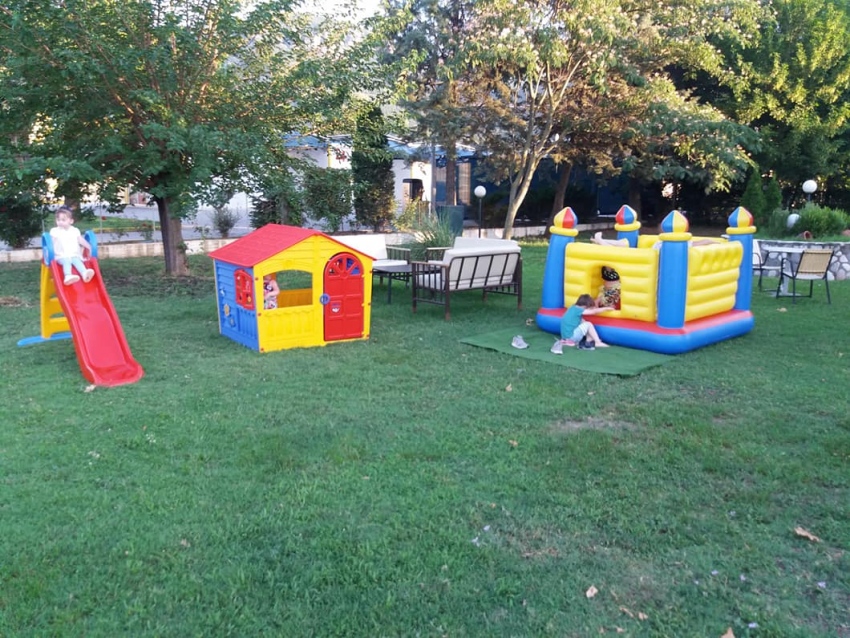 Στον τεράστιο καταπράσινο κήπο της Ταβέρνα BLACK μπορείτε να απολαύσετε την ομορφιά της φύσης, κατάλληλα διαμορφωμένο με λουλούδια ενώ τα παιδιά μπορούν να διασκεδάσουν στην παιδική χαρά που υπάρχει και στα νέα παιχνίδια που έχουν τοποθετηθεί για κείνα!