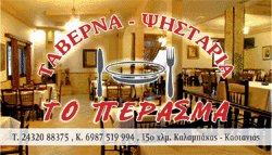 Η οικογενειακή ταβέρνα – ψησταριά “Το Πέρασμα” που βρίσκεται στο 15ο χλμ. Καλαμπάκας – Καστανιάς Ασπροποτάμου σας ικανοποιεί εδώ και χρόνια και φροντίζει να προσφέρει πάντα τα καλύτερα στους φίλους και πελάτες κατέχοντας μια ξεχωριστή θέση στις καρδιές όλων.
