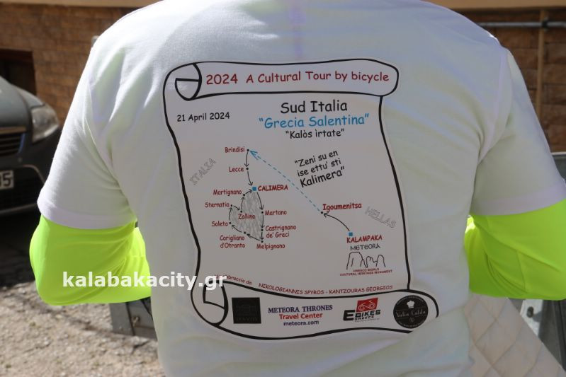 Το ταξίδι γίνεται από τον Σπύρο Νικολογιάννη Τοπικό Σύμβουλο Καλαμπάκας και τον Καντζούρα Γεώργιο οι οποίοι ποδηλατώντας θα βρεθούν σε εννιά ελληνόφωνες πόλεις της Grecia Salentina, όπου θα πραγματοποιηθεί υποδοχή σε κάθε δημαρχείο, σε μία προσπάθεια εξωστρέφειας, ευρύτερης συνεργασίας, προβολής και προώθησης των δύο πλευρών που τόσα κοινά έχουν στη μακραίωνη ιστορία τους!